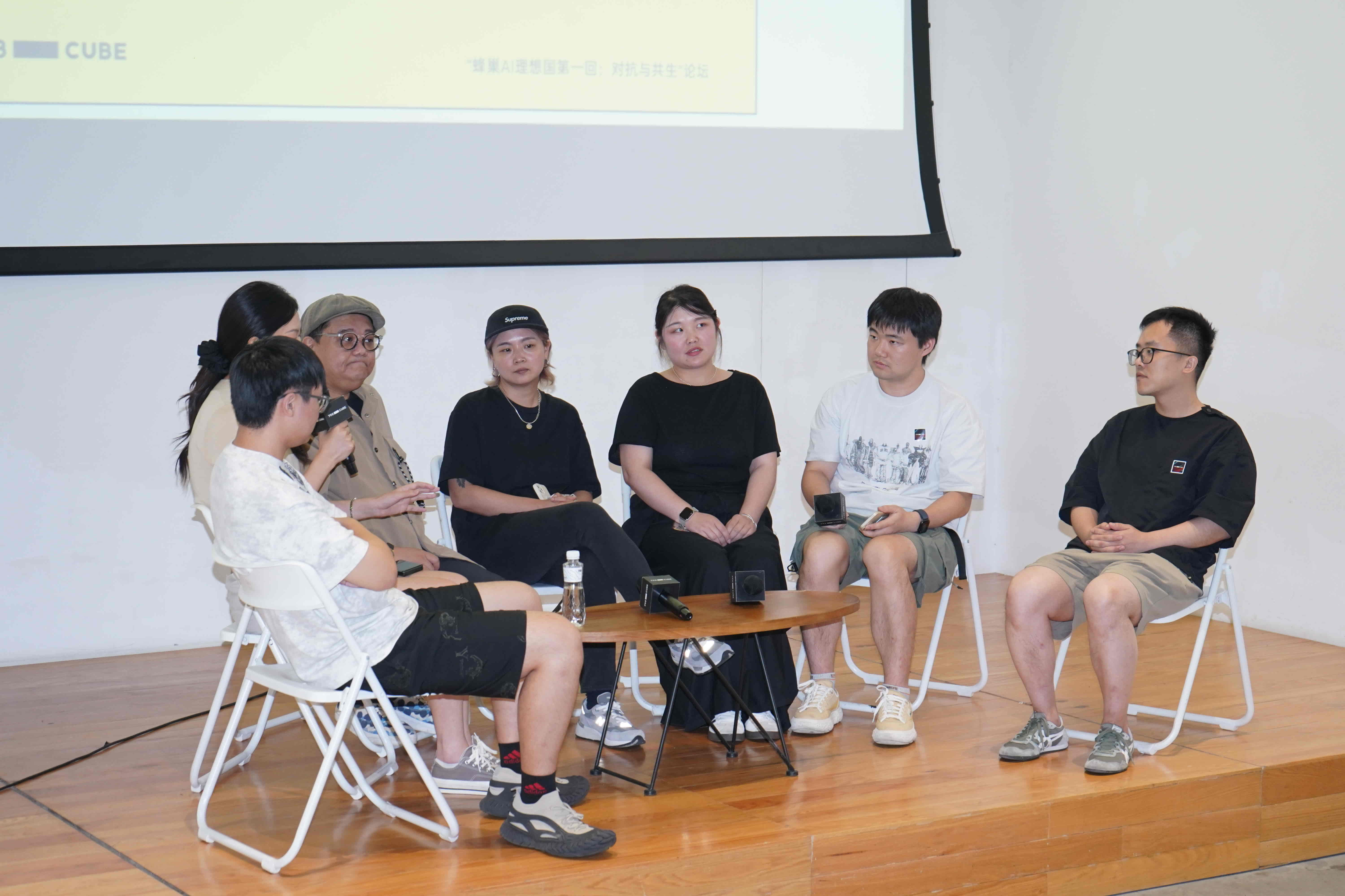 “蜂巢AI理想国 第⼀回展:对抗与共⽣”展览通过6场具有不同辩证的主题的对话,从本质上追问创作主体性、审美判断权、艺术价值评估体系等根本命题的当代重构。⽽本次论坛将延续展览中发问式的态度,将主题聚焦于“AI时代的创作”与“未来预测”,以期在与嘉宾、观众的讨论中重新发现 AI 在现代、在未来;对艺术、对创作的影响。