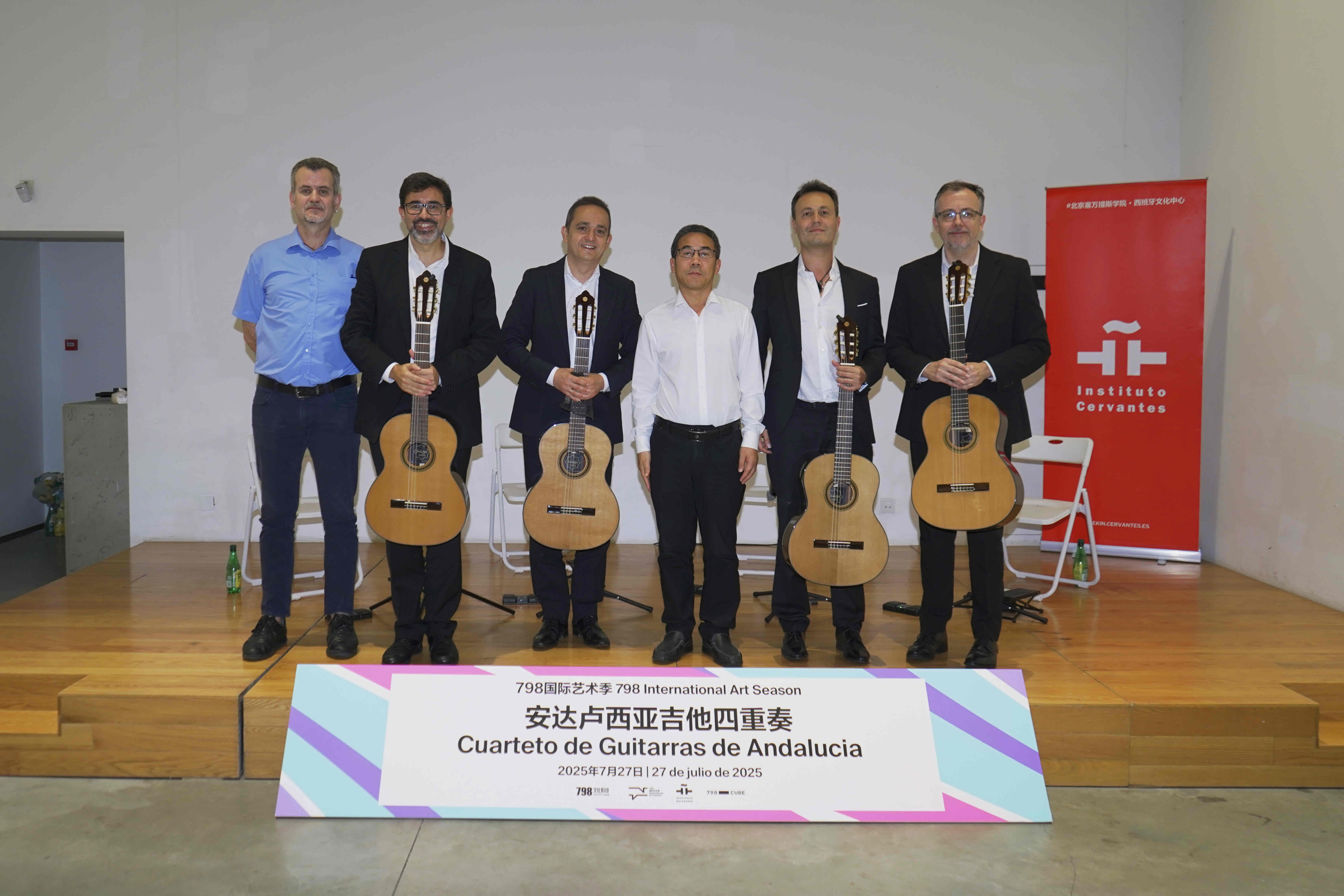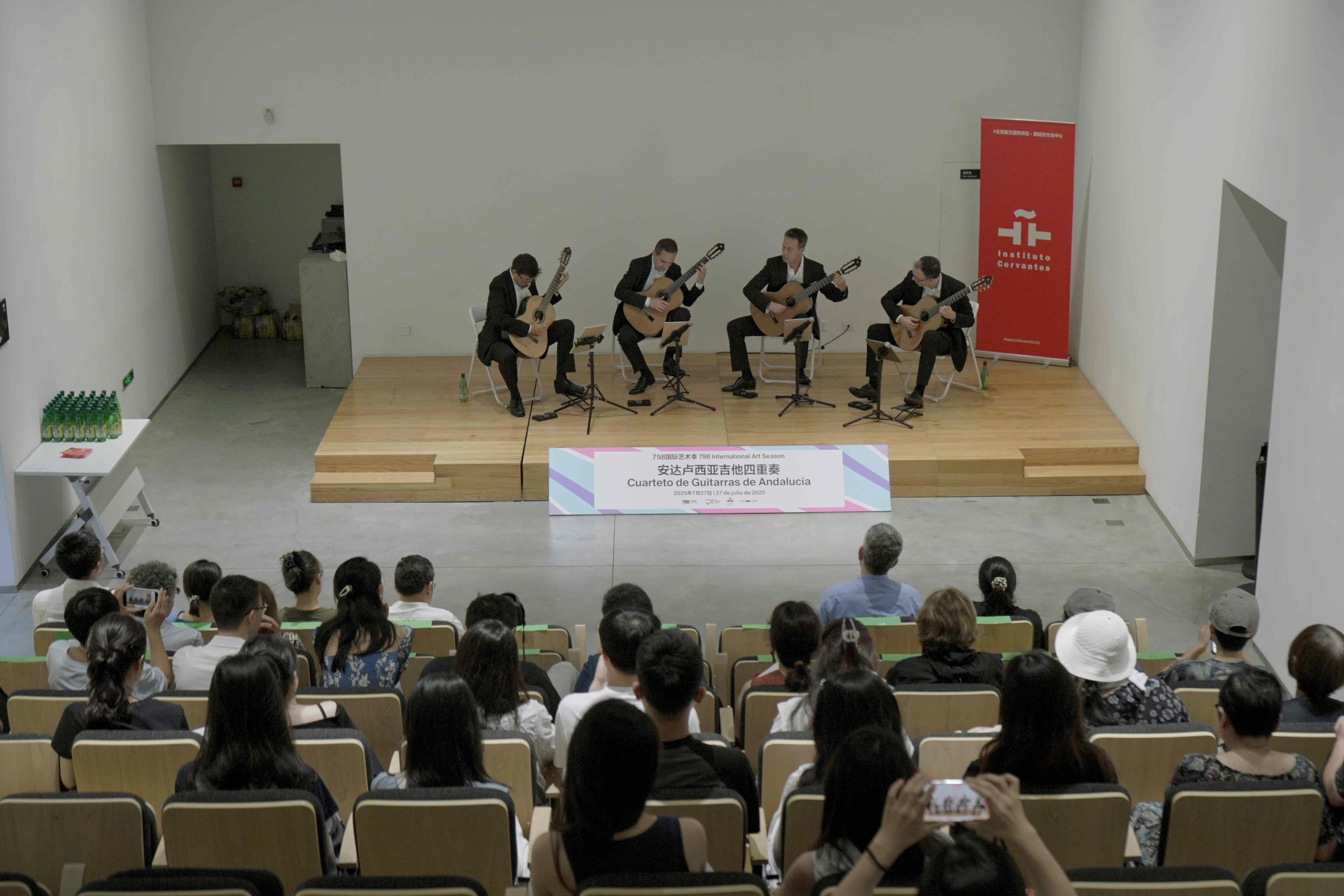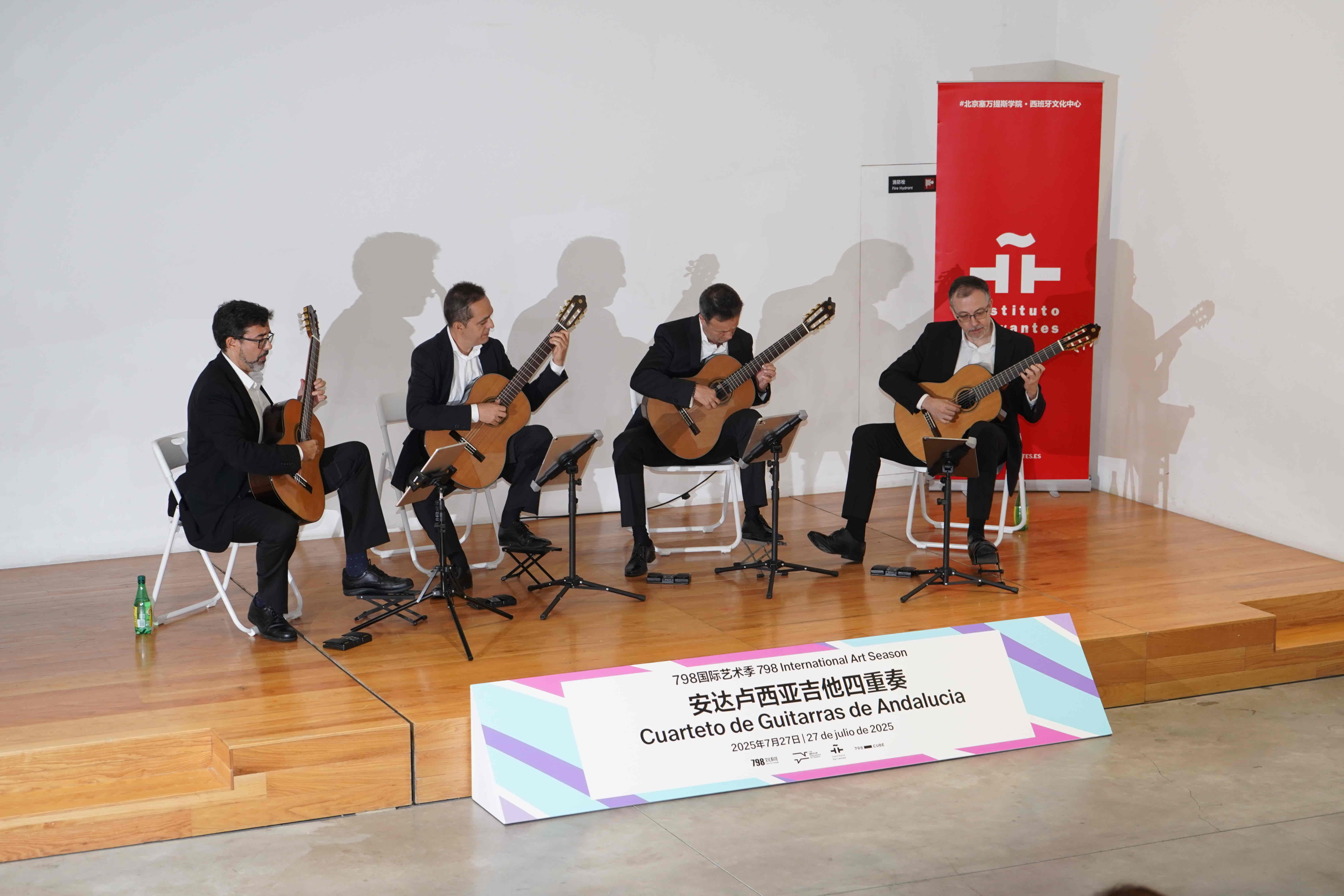 今夏,798国际艺术季“串门儿”继续上演跨文化的艺术相遇。2025年7月27日,享誉国际的西班牙乐队“安达卢西亚吉他四重奏”(Cuarteto de Guitarras de Andalucía)齐聚798CUBE,带来一场纯正而热烈的吉他演出,演绎他们心中的《西班牙之景》(Visiones de España),为北京的盛夏带来一抹南欧风情。