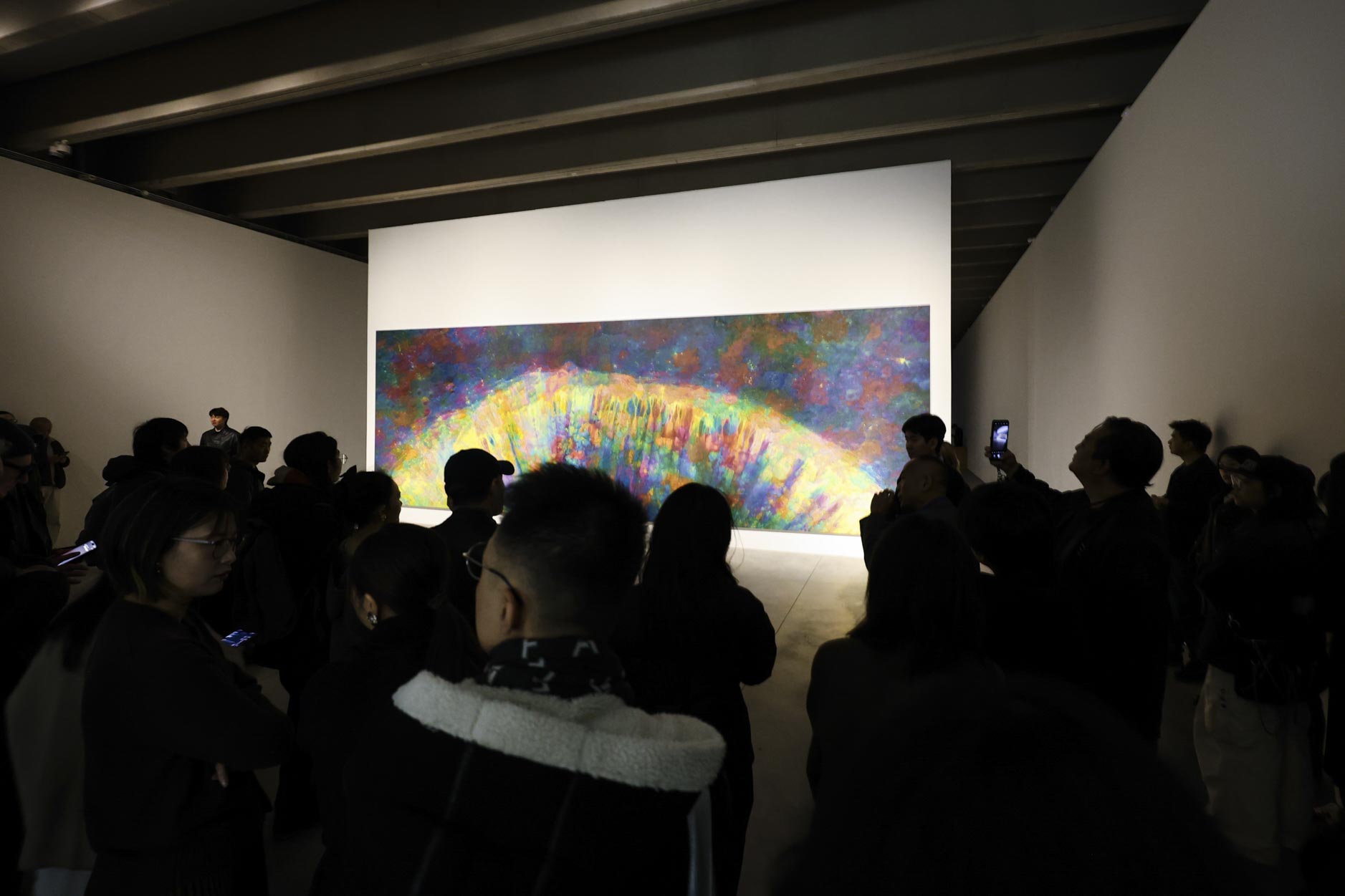 同样的张力在“月亮”中找到了宇宙的对应。月亮于人类为不朽,于宇宙则短暂,是天体亦为近邻;在王郁洋眼中,月亮既引导观念,也是形式的媒介。早期作品如《人造月》与《液体月亮》(上海OCAT,2022)已将月亮确立为艺术探究的母题——既是神话与概念,也是知觉实验。本次展出的《月亮系列》绘画更以新的强度重返幻象:艺术家通过黑白相机作画,感知的是单色,而画布却呈现出鲜艳色彩——有违我们长期以来对“无色月亮”的固有印记。由此诞生的是一种“虚假再现”所生成的“真实图像”,在闪烁与消逝之间,通向那未见却长存之物。